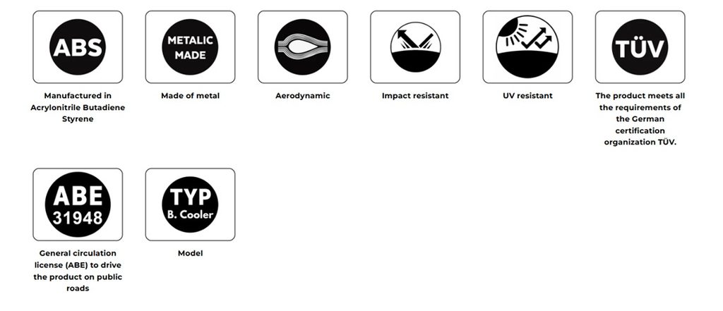 Sada se skládá ze dvou chladicích kanálů, které jsou navrženy a vyrobeny v našem závodě v Barceloně s využitím nejmodernějších technologií lisování plastů. Ocelové držáky s elegantní černou texturovanou povrchovou úpravou zajišťují pevnost a tuhost potřebnou pro intenzivní použití.