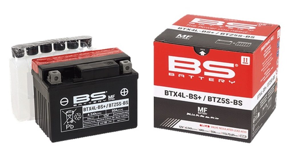 Baterie BTX4L-BS+/BTZ5S-BS je součástí naší bezúdržbové MF řady. Tato 12V 4.2Ah baterie se dodává s balením elektrolytu (kyseliny) a před prvním použitím je nutné ji aktivovat nalitím kyseliny.