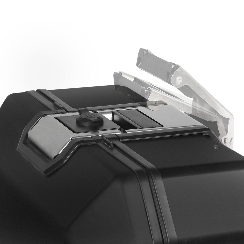 Unikátní integrovaný mechanismus zámku a madla umožňuje jednoduché ovládání jednou rukou a snadnou demontáž z motocyklu.