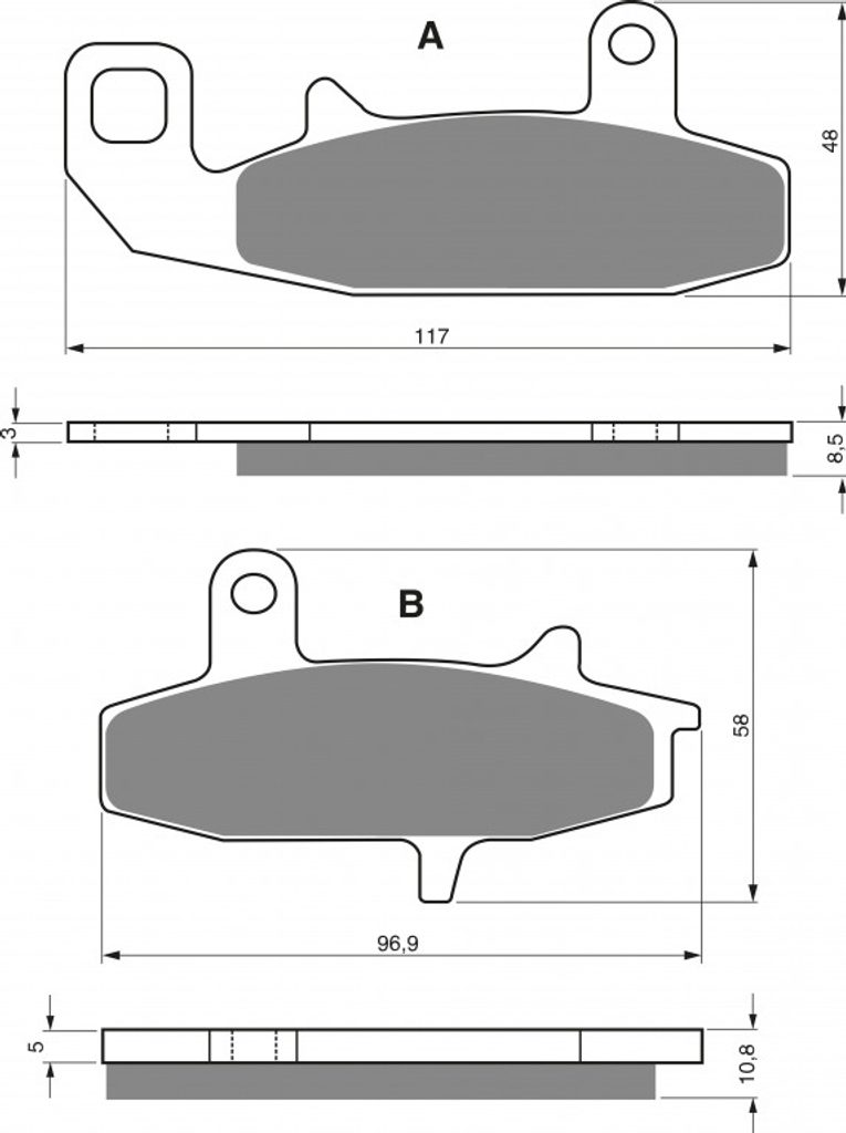 Sintrované brzdové destičky pro lehčí motocykly a běžné použití. Silniční typy mají homologaci TÜV.