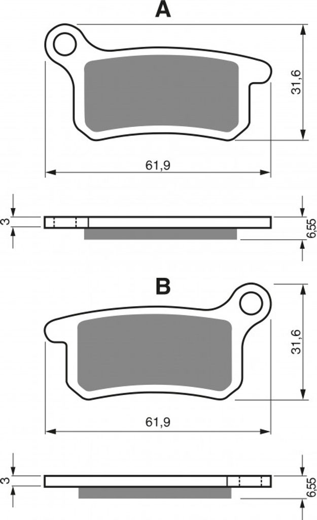 Sintrované brzdové destičky pro lehčí motocykly a běžné použití. Silniční typy mají homologaci TÜV.
