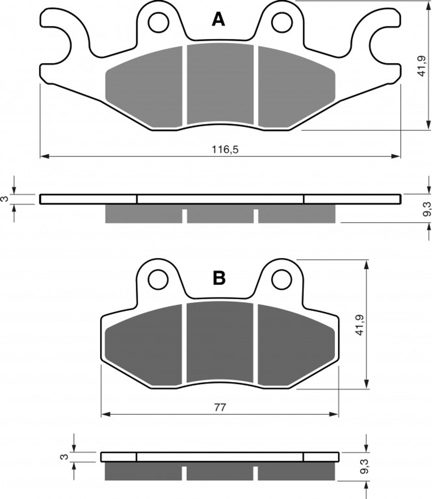 Sintrované brzdové destičky pro sportovní použití nebo těžší motocykly. Silniční typy mají homologaci TÜV.