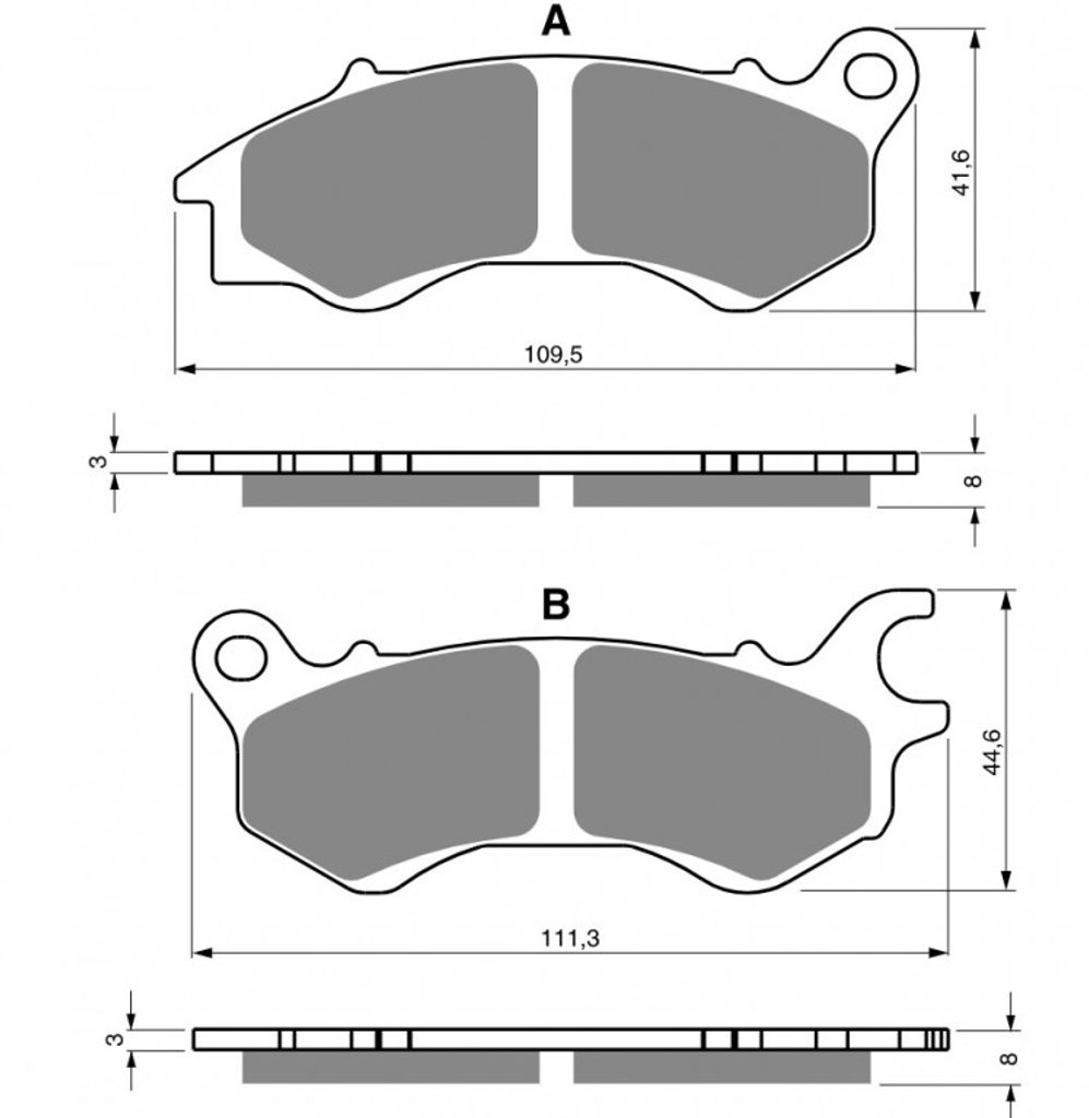 Sintrované brzdové destičky pro sportovní použití nebo těžší motocykly. Silniční typy mají homologaci TÜV.