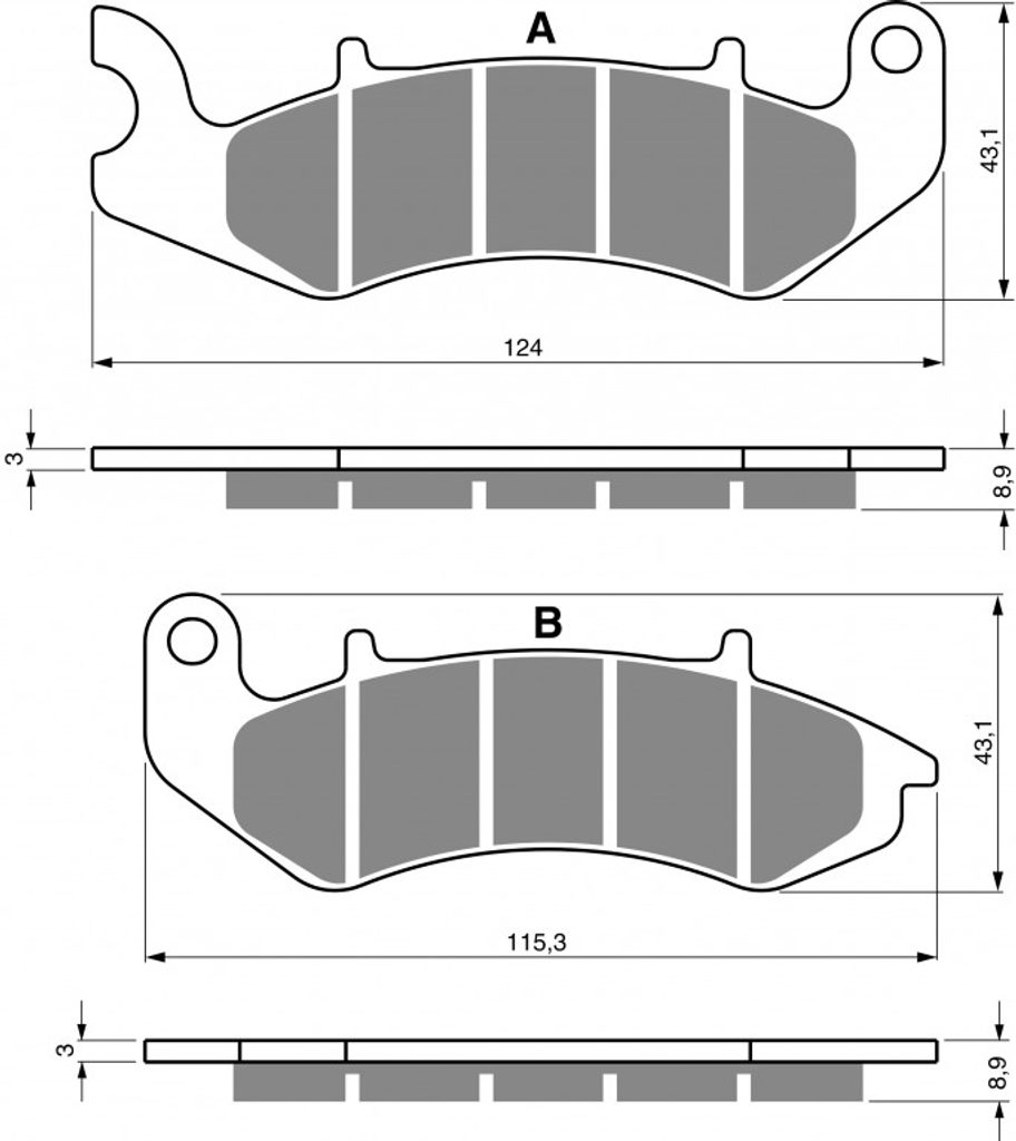 Sintrované brzdové destičky pro lehčí motocykly a běžné použití. Silniční typy mají homologaci TÜV.