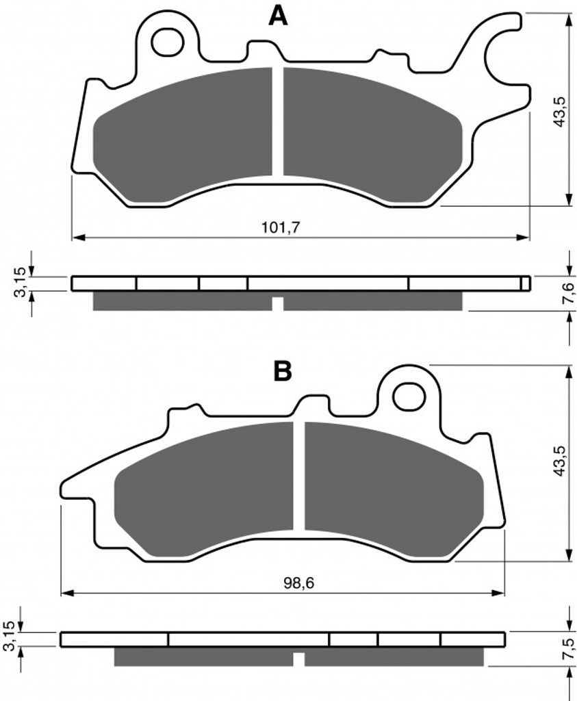 Sintrované brzdové destičky pro lehčí motocykly a běžné použití. Silniční typy mají homologaci TÜV.