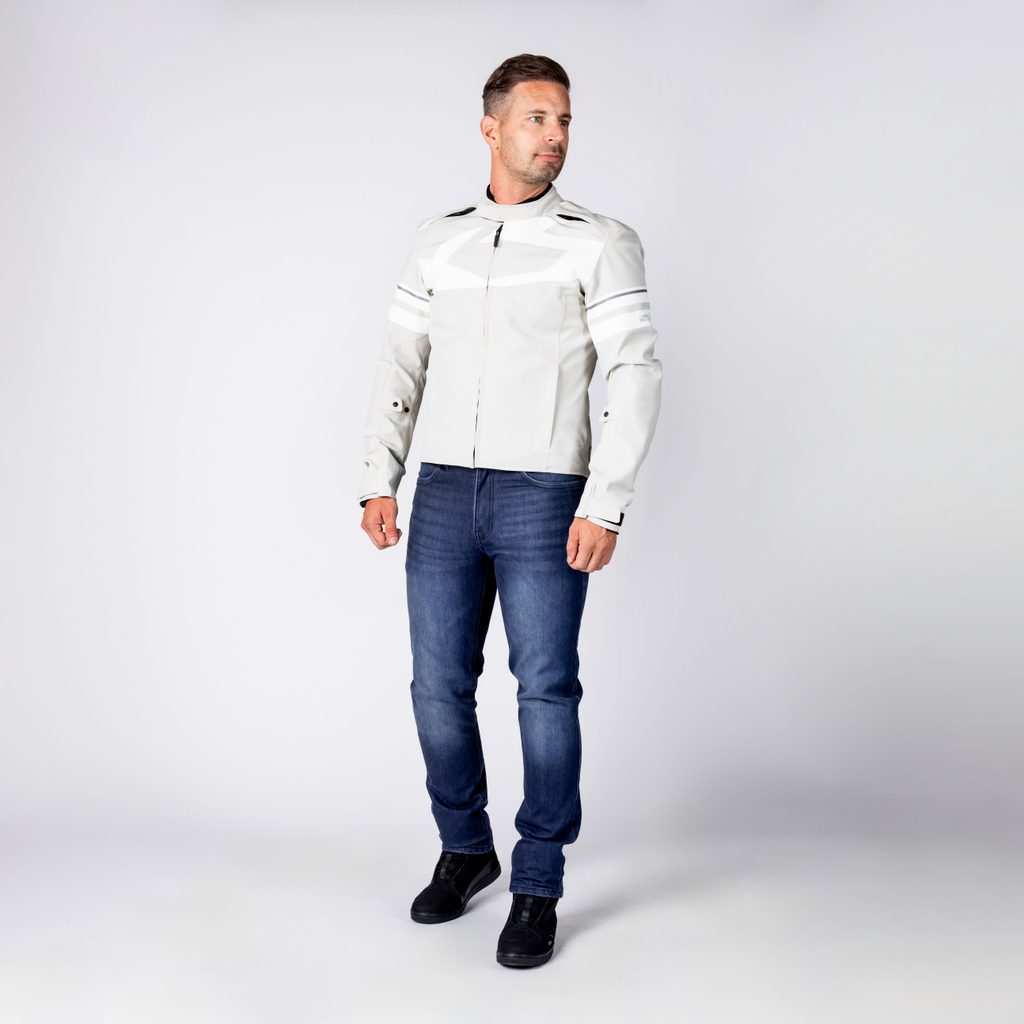 Odolná jezdecká bunda inspirovaná rychlostí, vhodná do každého počasí.