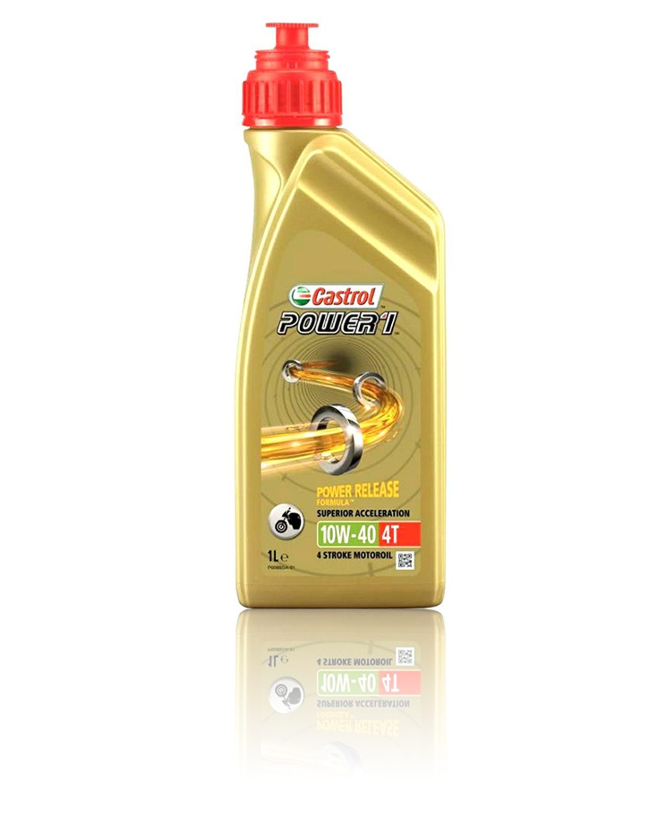 Castrol Power 1 4T 10W-40 je moderní olej výjimečné kvality vyvinutý pro moderní čtyřdobé motory. Jeho složení Power Protection Formula je speciálně vyvinuto k ochraně motoru Vašeho motocyklu před usazeninami, jež snižují jeho výkon. Trizone TechnologyTM – výkonnost tří kritických zón – motoru, spojky a převodovky. Splňuje specifikace: SAE 10W-40 API SJ JASO MA-2