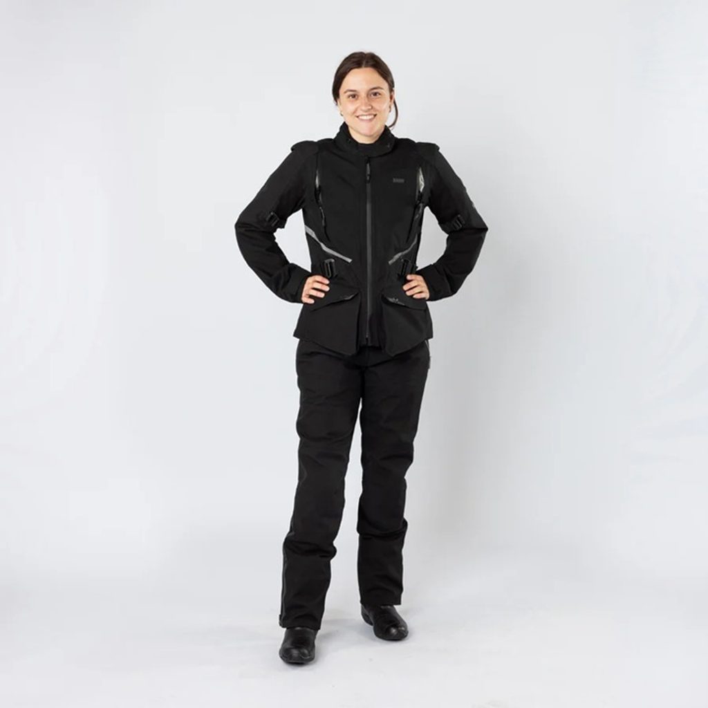 Pro co nejspolehlivější ochranu před povětrnostními vlivy a nehodami doporučujeme používat s dámskou laminovanou bundou Tourster-STX 1.0, kterou propojíte s kalhotami dlouhým zipem pro bezproblémovou integraci.