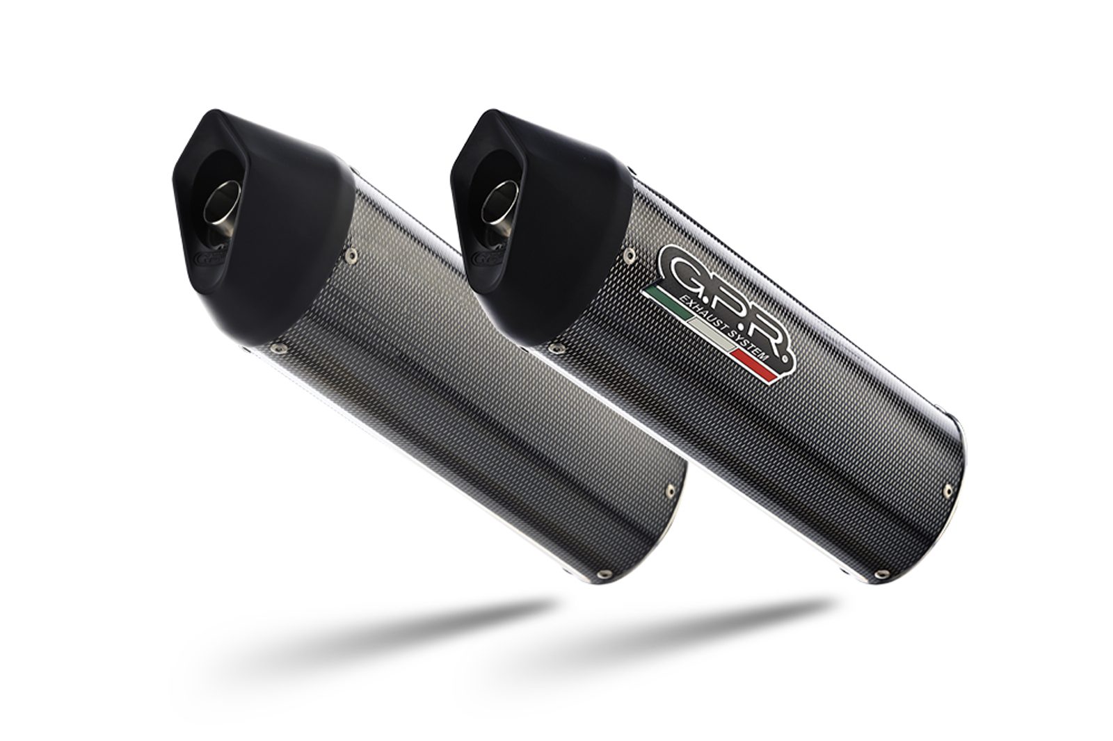 Dvojitá koncovka výfuku Slip-on GPR FURORE D.15.CAT.1.FUPO Matná černá zahrnuje odnímatelné db killery, spojovací svody a katalyzátory