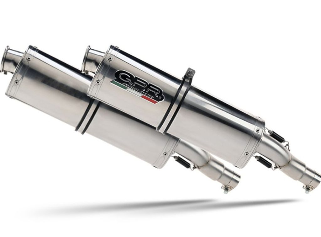 Dvojitá koncovka výfuku Slip-on GPR TRIOVAL D.121.TRI Leštěná nerezová ocel zahrnuje odnímatelné dB killery a spojovací svody