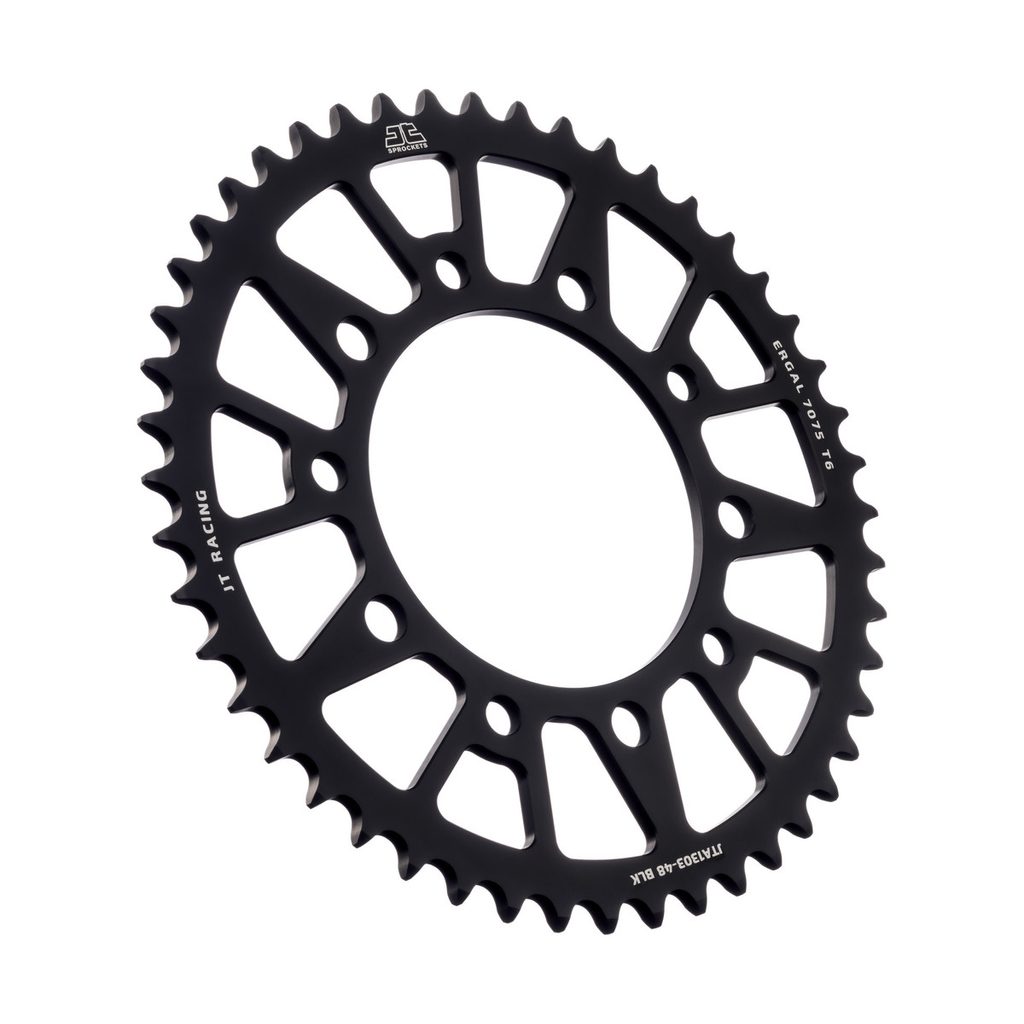JT používá výhradně ty nejkvalitnější materiály. Pro závodní lehké rozety je to hliníková slitina letecké kvality 7075-T6, pro přední pastorky extrémně pevná slitina SCM420 (chrom-molybdenová ocel) a pro zadní ocelové rozety jako jediný výrobce používá ultra odolnou uhlíkovou ocel C49.
