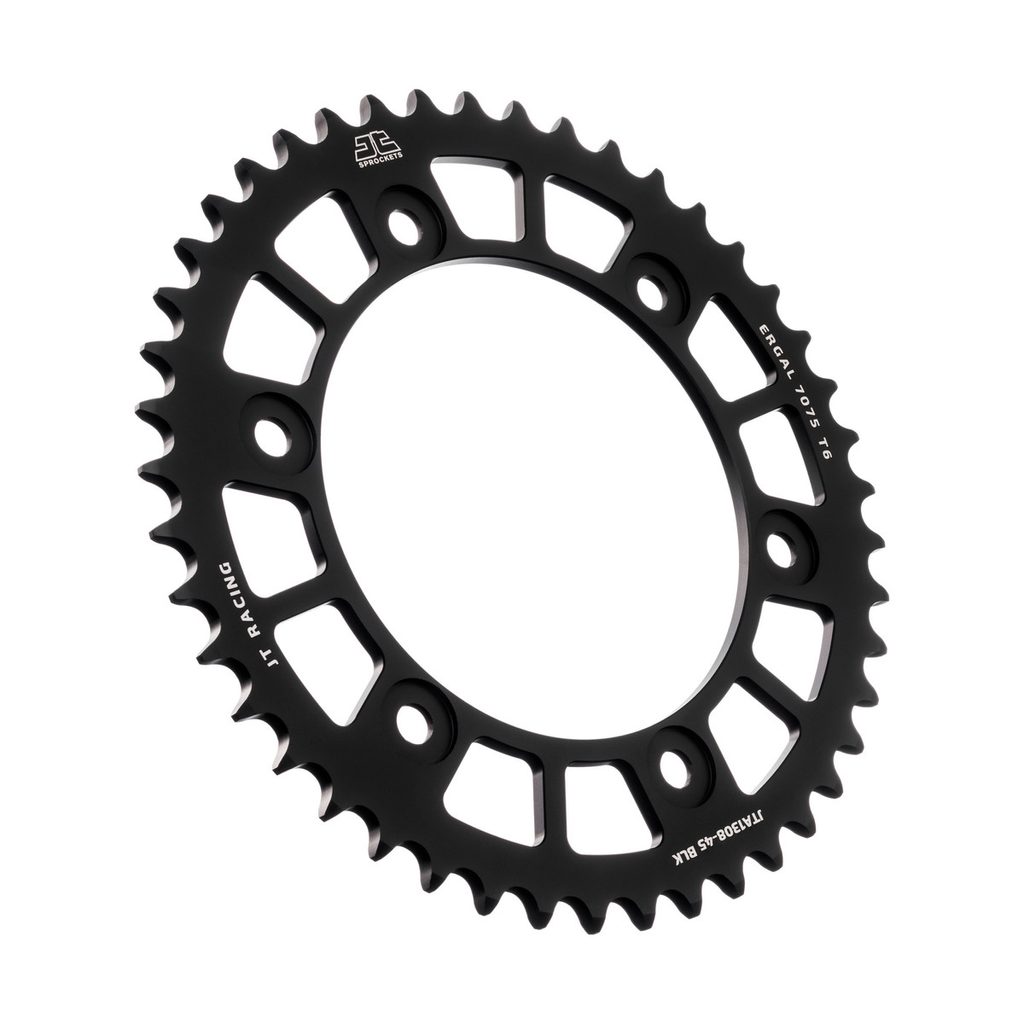 JT používá výhradně ty nejkvalitnější materiály. Pro závodní lehké rozety je to hliníková slitina letecké kvality 7075-T6, pro přední pastorky extrémně pevná slitina SCM420 (chrom-molybdenová ocel) a pro zadní ocelové rozety jako jediný výrobce používá ultra odolnou uhlíkovou ocel C49.