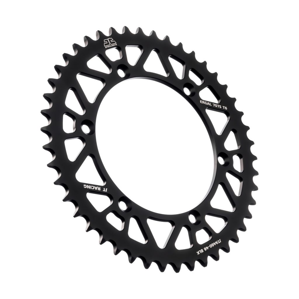 JT používá výhradně ty nejkvalitnější materiály. Pro závodní lehké rozety je to hliníková slitina letecké kvality 7075-T6, pro přední pastorky extrémně pevná slitina SCM420 (chrom-molybdenová ocel) a pro zadní ocelové rozety jako jediný výrobce používá ultra odolnou uhlíkovou ocel C49.