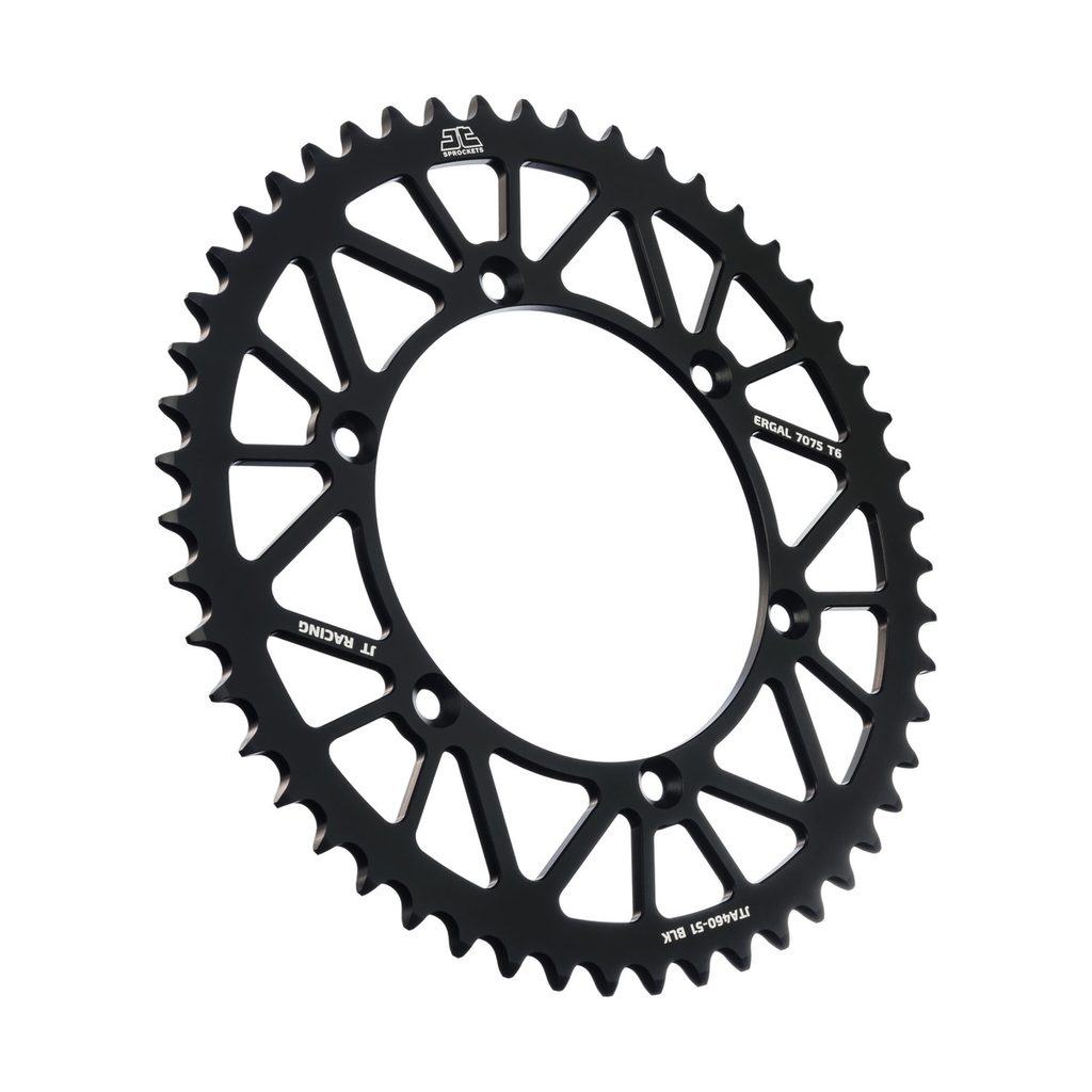 JT používá výhradně ty nejkvalitnější materiály. Pro závodní lehké rozety je to hliníková slitina letecké kvality 7075-T6, pro přední pastorky extrémně pevná slitina SCM420 (chrom-molybdenová ocel) a pro zadní ocelové rozety jako jediný výrobce používá ultra odolnou uhlíkovou ocel C49.