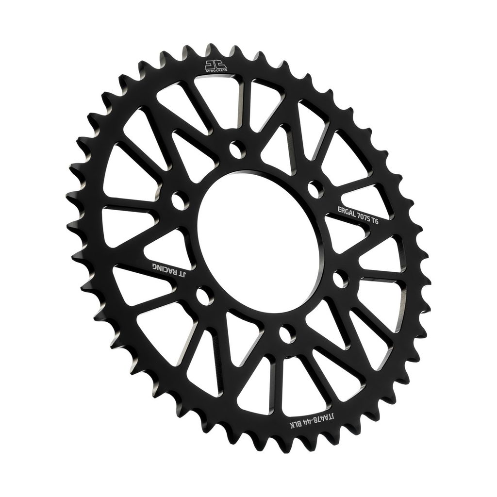 JT používá výhradně ty nejkvalitnější materiály. Pro závodní lehké rozety je to hliníková slitina letecké kvality 7075-T6, pro přední pastorky extrémně pevná slitina SCM420 (chrom-molybdenová ocel) a pro zadní ocelové rozety jako jediný výrobce používá ultra odolnou uhlíkovou ocel C49.