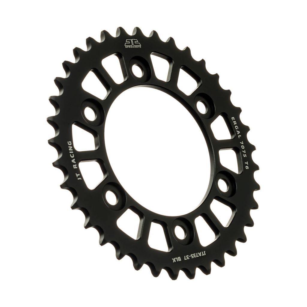 JT používá výhradně ty nejkvalitnější materiály. Pro závodní lehké rozety je to hliníková slitina letecké kvality 7075-T6, pro přední pastorky extrémně pevná slitina SCM420 (chrom-molybdenová ocel) a pro zadní ocelové rozety jako jediný výrobce používá ultra odolnou uhlíkovou ocel C49.
