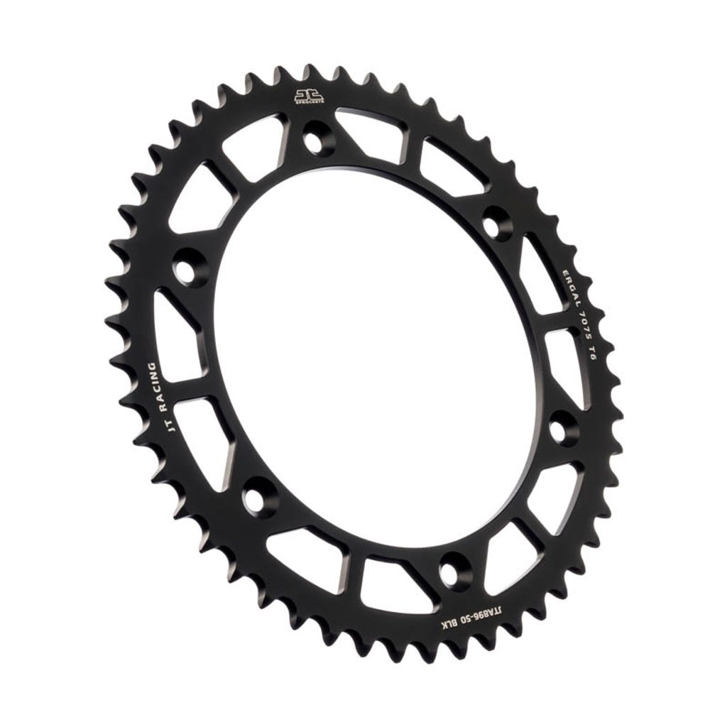 JT používá výhradně ty nejkvalitnější materiály. Pro závodní lehké rozety je to hliníková slitina letecké kvality 7075-T6, pro přední pastorky extrémně pevná slitina SCM420 (chrom-molybdenová ocel) a pro zadní ocelové rozety jako jediný výrobce používá ultra odolnou uhlíkovou ocel C49.