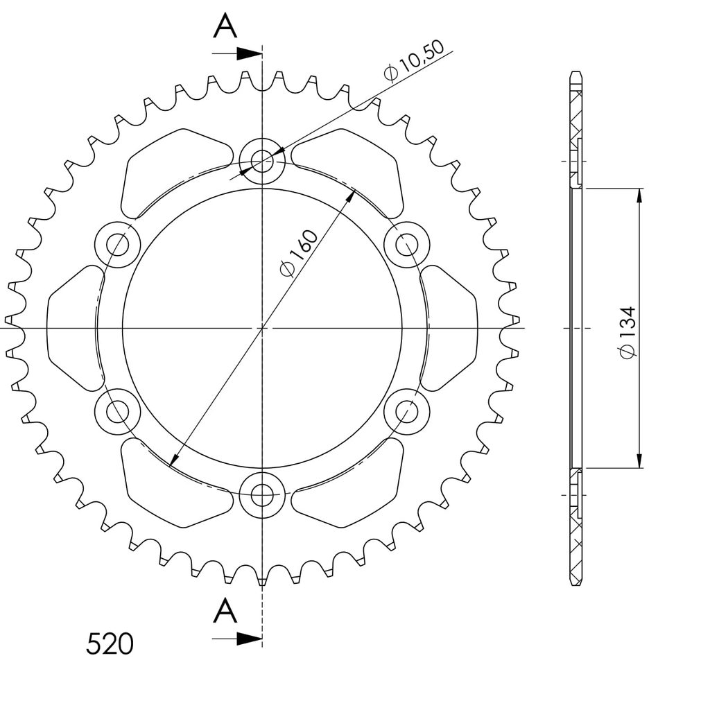 Hliníková řetězová rozeta SUPERSPROX RAL-1308:46-BLK černý 46 zubů, 520