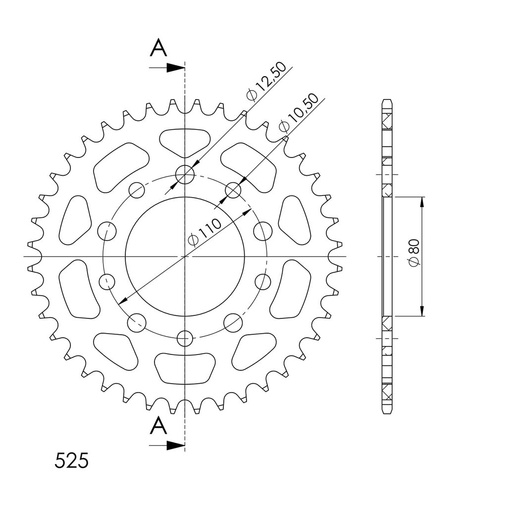Hliníková řetězová rozeta SUPERSPROX RAL-1332:40-BLK černý 40 zubů, 525