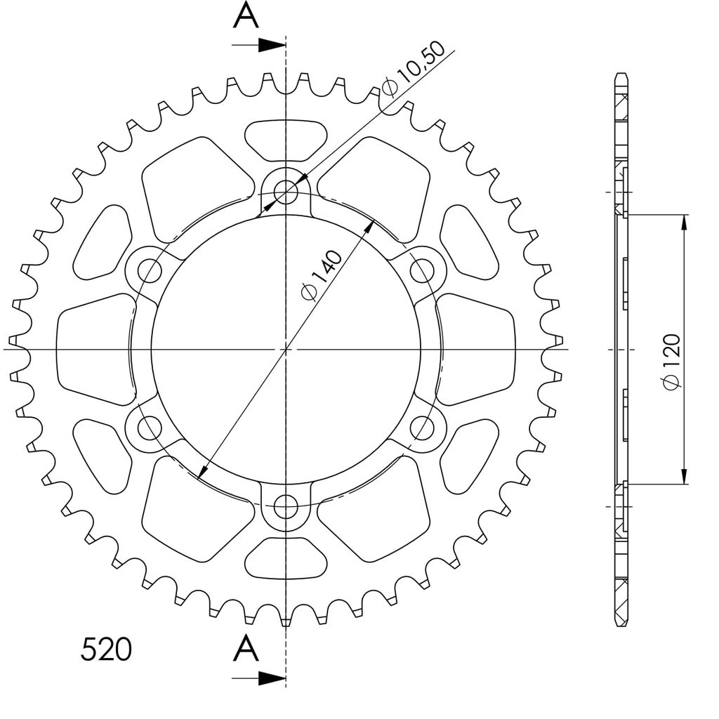 Hliníková řetězová rozeta SUPERSPROX RAL-1490:47-BLK černý 47 zubů, 520