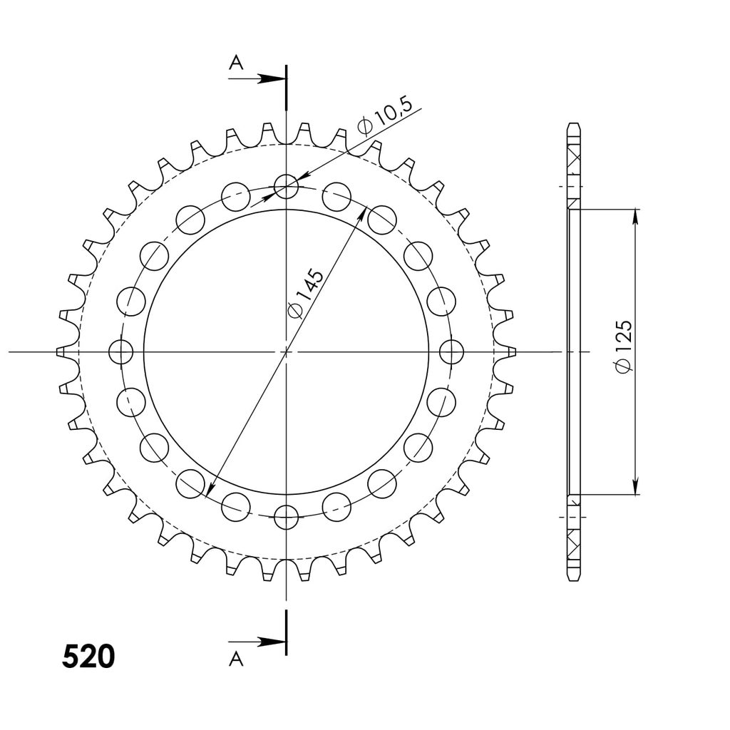 Hliníková řetězová rozeta SUPERSPROX RAL-1857:38-BLK černý