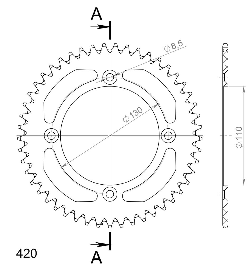 Hliníková řetězová rozeta SUPERSPROX RAL-209:49-SLV stříbrná 49 zubů, 420