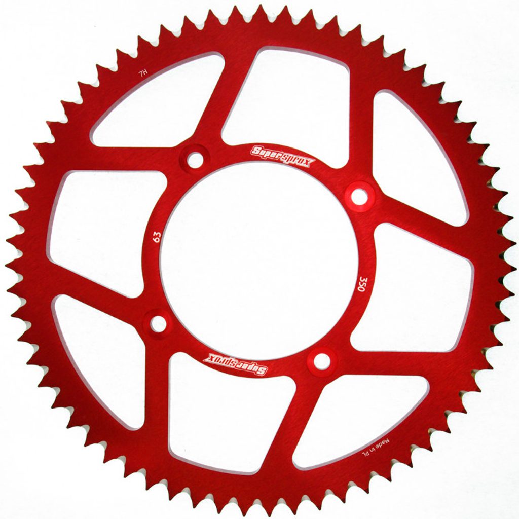 Hliníková řetězová rozeta SUPERSPROX RAL-350:63-RED červená 63 zubů, 428