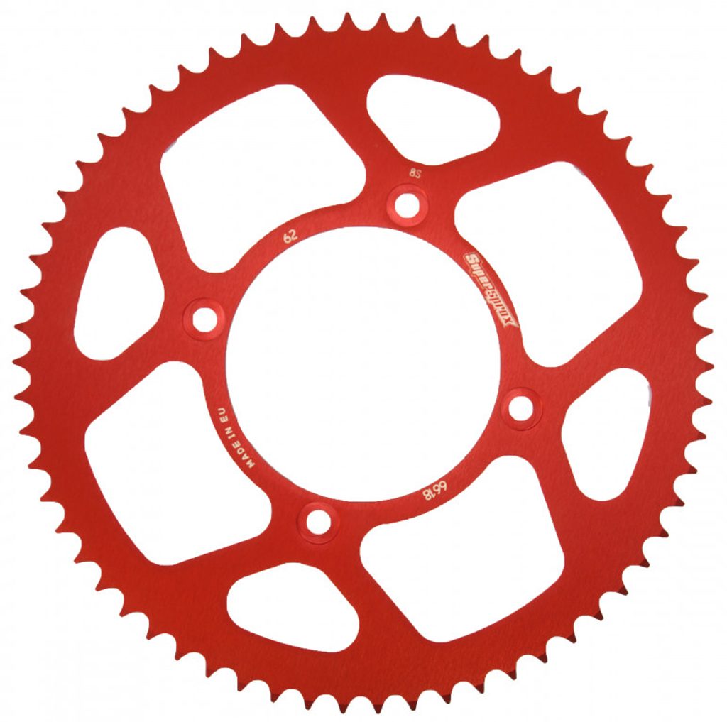Hliníková řetězová rozeta SUPERSPROX RAL-6618:62-RED červená 62 zubů, 420