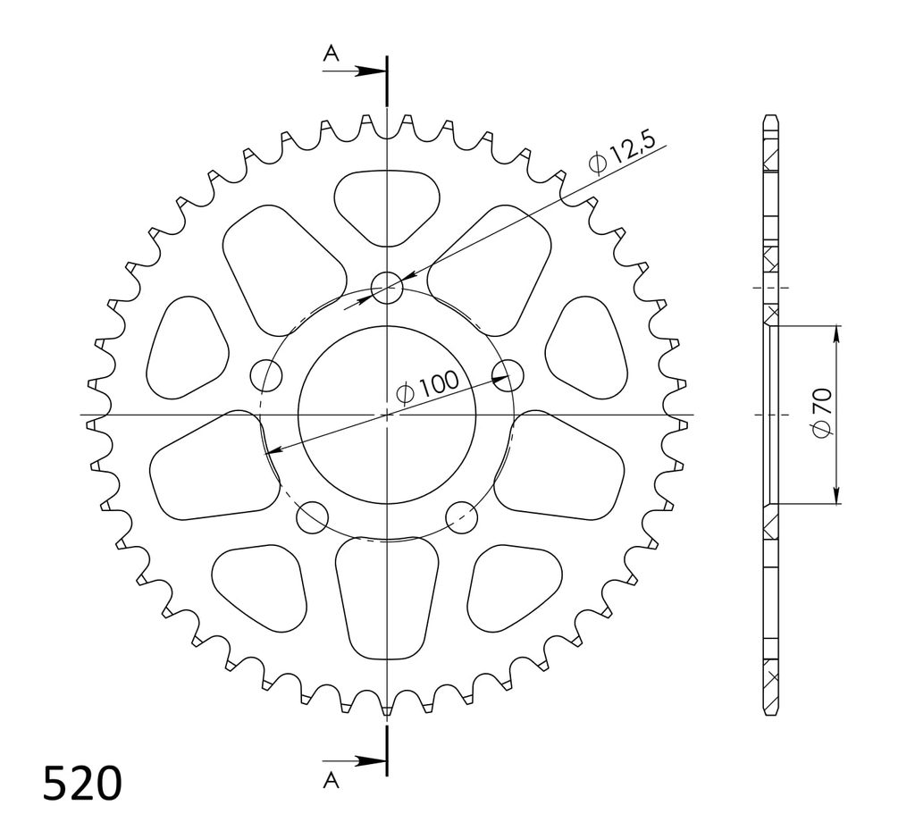 Hliníková řetězová rozeta SUPERSPROX RAL-728:45-BLK černý 45 zubů, 520