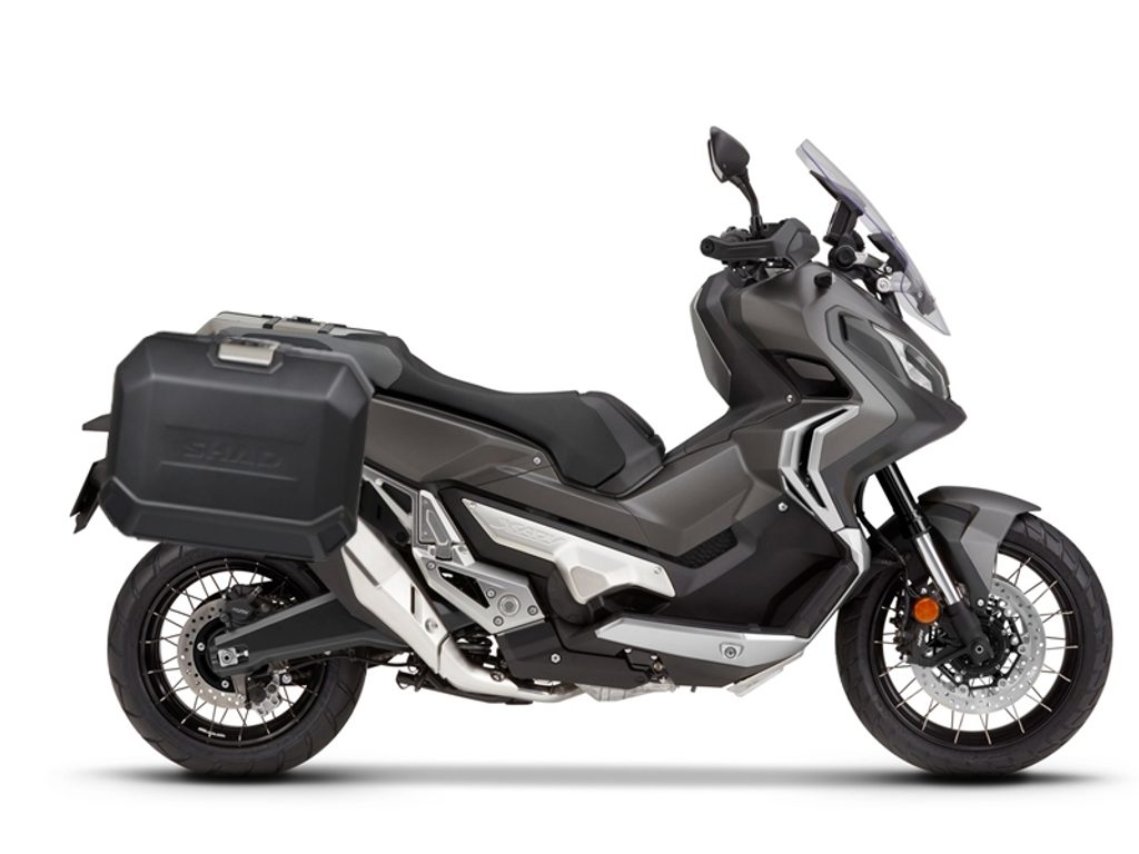 Kompletní sada bočních černých hliníkových kufrů SHAD TERRA BLACK 47L/47L, včetně montážní sady SHAD HONDA X-ADV 750