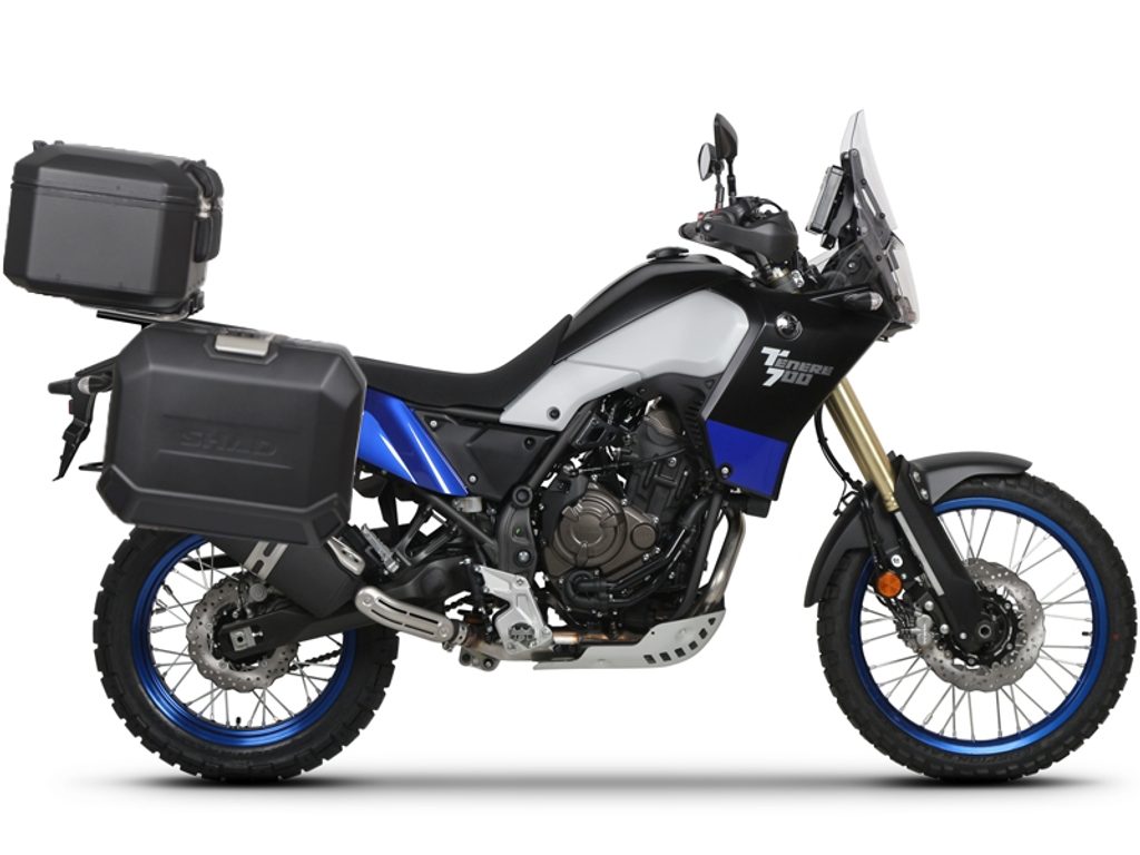 Kompletní sada černých hliníkových kufrů SHAD Terra obsahuje černý vrchní kufr TR37 s kapacitou 37L včetně plotny, levý černý hliníkový kufr TR47 s kapacitou 47L a pravý černý hliníkový kufr TR36 s kapacitou 36L kvůli umístění výfuku. Pravý kufr tak nebude vyčnívat. Sada obsahuje vše, co potřebujete k montáži obou kufrů.