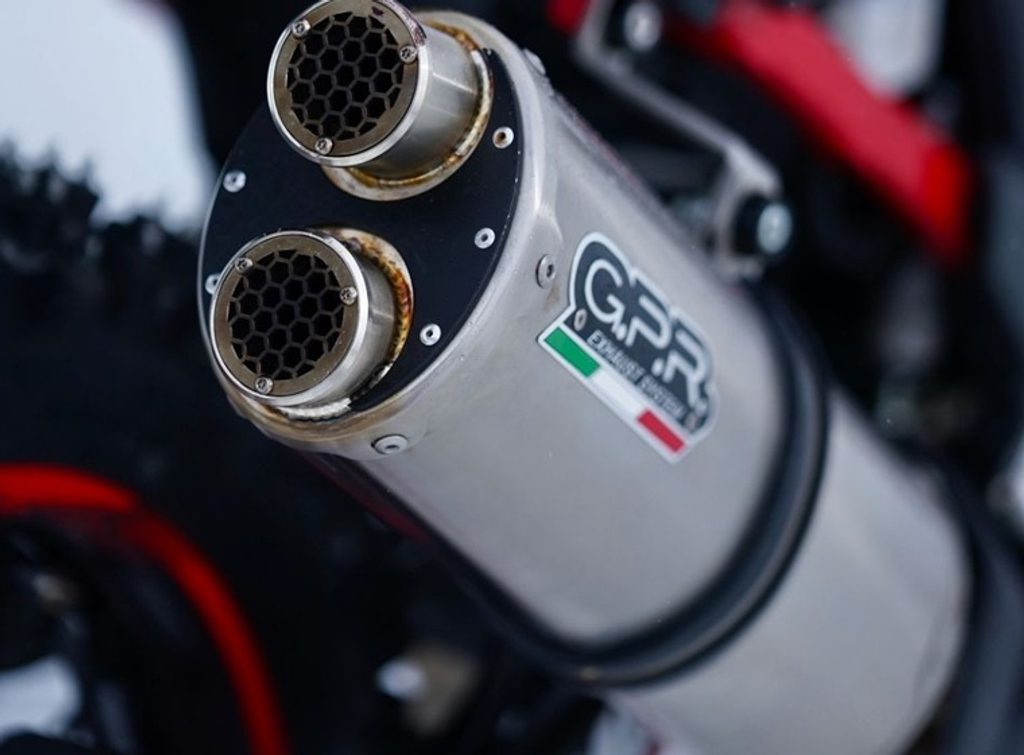 Koncovka výfuku Slip-on GPR DUAL INOX E5.H.264.1.DUAL.IO Matný nerez zahrnuje spojovací svod a odnímatelný dB killer