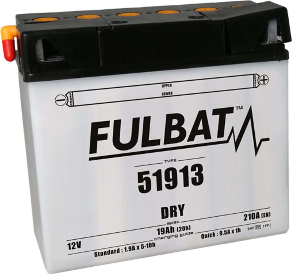 Řada DRY suchých baterií nabízí nesrovnatelný výběr 6V a 12V modelů. Používá se v řadě motorek, hlavně v čínských skútrech. Dodává se suchá, nenaplněná kyselinou, takže ji lze dlouho skladovat, aniž by potřebovala kontrolu či dobíjení. Před prvním použitím je potřeba ji naplnit kyselinou (elektrolytem). Ta je dodávána jako součástí balení, ve správném množství.