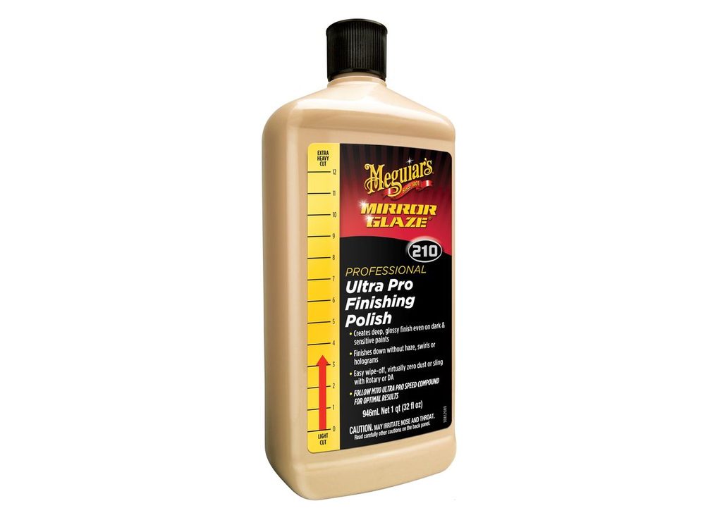 Nová evoluce profesionální finišovací leštěnky pro odstranění lehkých defektů a hologramů a vyleštění laku do maximálního lesku! Skvělá také pro leštění problematických laků (orbitální mlha, mikroškrábanečky apod.). Bezpečná pro lakovny (neobsahuje silikony), skvělá pro detailingová studia! To je naše Meguiar's M210! Vhodná také k použití na laminát, gel-coat nebo čiré plasty. M210 Meguiar's Ultra Pro Finishing Polish je druhým, finišovacím krokem v profesionálním dvoukrokovém systému Meguiar's Mirror Glaze. S touto pastou, kterou můžete aplikovat jak ručně, tak strojně pomocí orbitální, planetární i rotační leštičky, odstraníte drobné defekty laku (hologramy, lehké škrábance a skvrny, začínající oxidaci) a díky vylepšené směsi lešticích olejů vyleštíte lak do maximálního možného lesku. Tato pasta je vhodná pro použití se všemi typy kotoučů, tedy pěnovými, mikrovláknovými i vlněnými. Velkou uživatelskou výhodou této pasty je nulová prašnost snížená tvorba hologramů při práci s rotační leštičkou. Díky svému složení, které neobsahuje silikony, je vhodná i do lakoven a prostředí citlivých na přítomnost silikonů. M210 tak můžete bez obav použít i na zcela čerstvých, právě zaschlých lacích, a opravovat s ní tak veškeré jejich nedostatky.