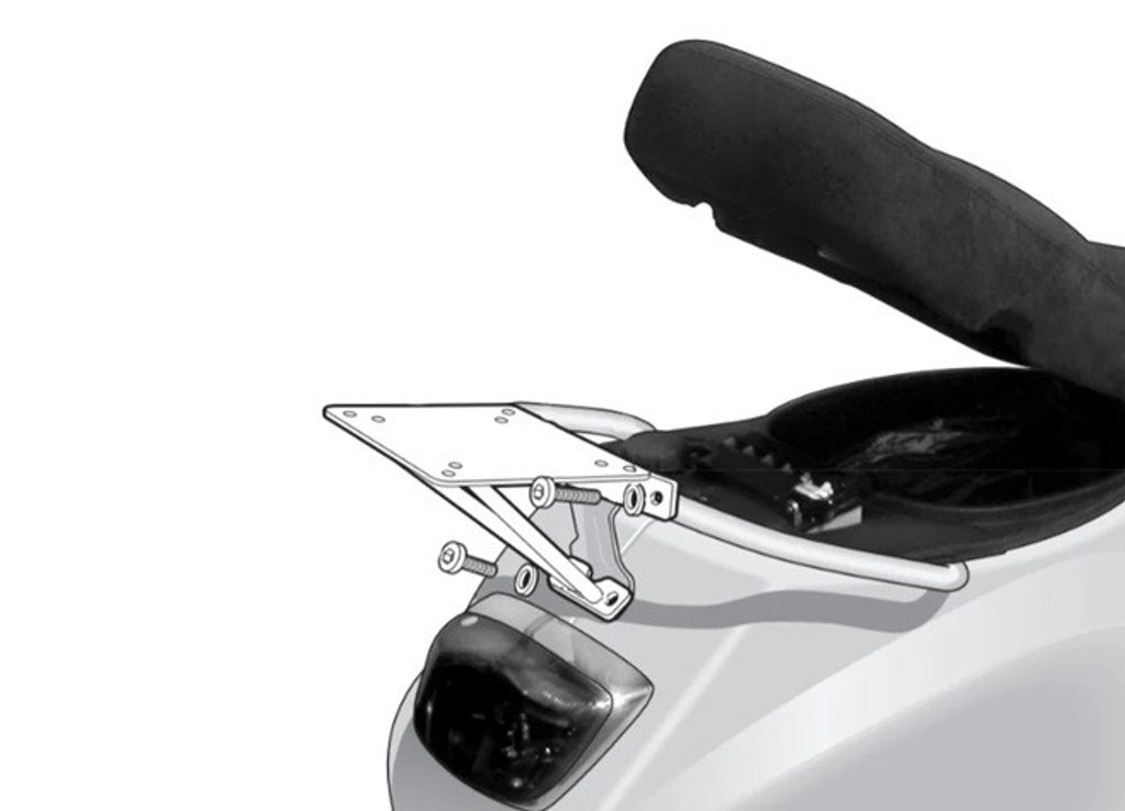 K upevnění vrchního kufru SHAD na motorku stačí namontovat tuto montážní sadu, plotna je vždy součástí kufru (kromě kufrů TR48/TR37).