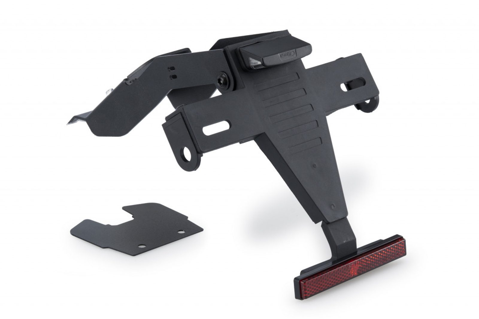 Nahraďte původní držák registrační značky motocyklu držákem značky od Puig, který díky své vyvýšené poloze dodává motorce sportovní vzhled. Sada kombinuje ocelové díly s epoxidovým lakováním a polyamidové prvky, čímž dosahuje výrazného snížení hmotnosti oproti originálnímu držáku.