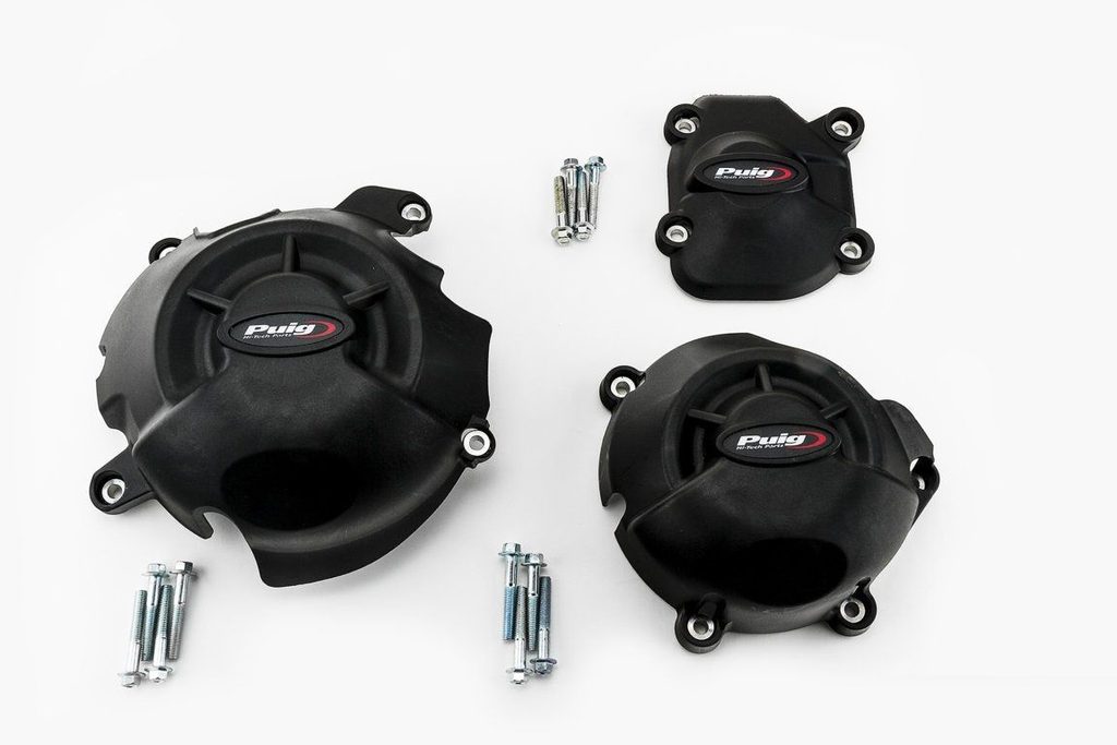 Ochranné kryty motoru PUIG 20136N černý zahrnuje pravý, levý kryt a kryt alternátoru