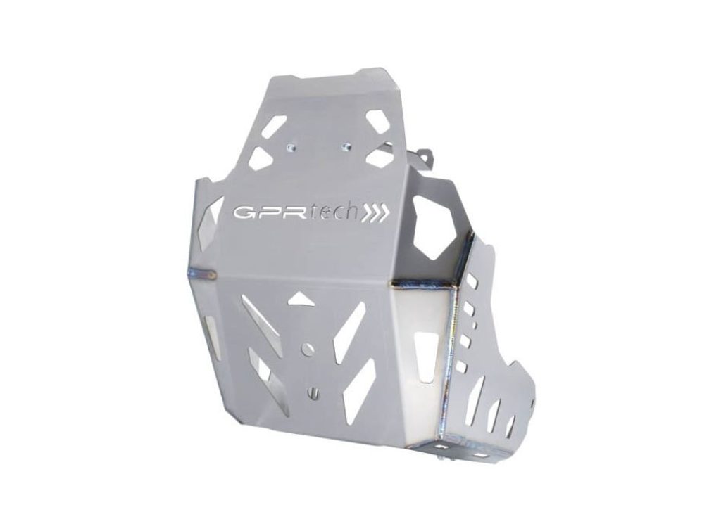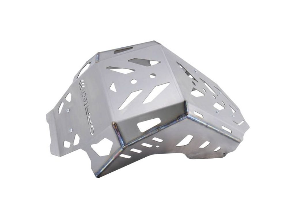 Vyrobeno z titanu třídy 2 o tloušťce 3 mm – tento spodní kryt motoru (skid plate) zajišťuje spolehlivou ochranu motoru, rámu i vodní pumpy. Díky titanovému provedení je o 50 % lehčí než podobné výrobky z hliníku, nevytváří vibrace, pohlcuje část energie nárazů a představuje nejlepší řešení, jak ochránit tvou motorku před kameny a terénními překážkami.