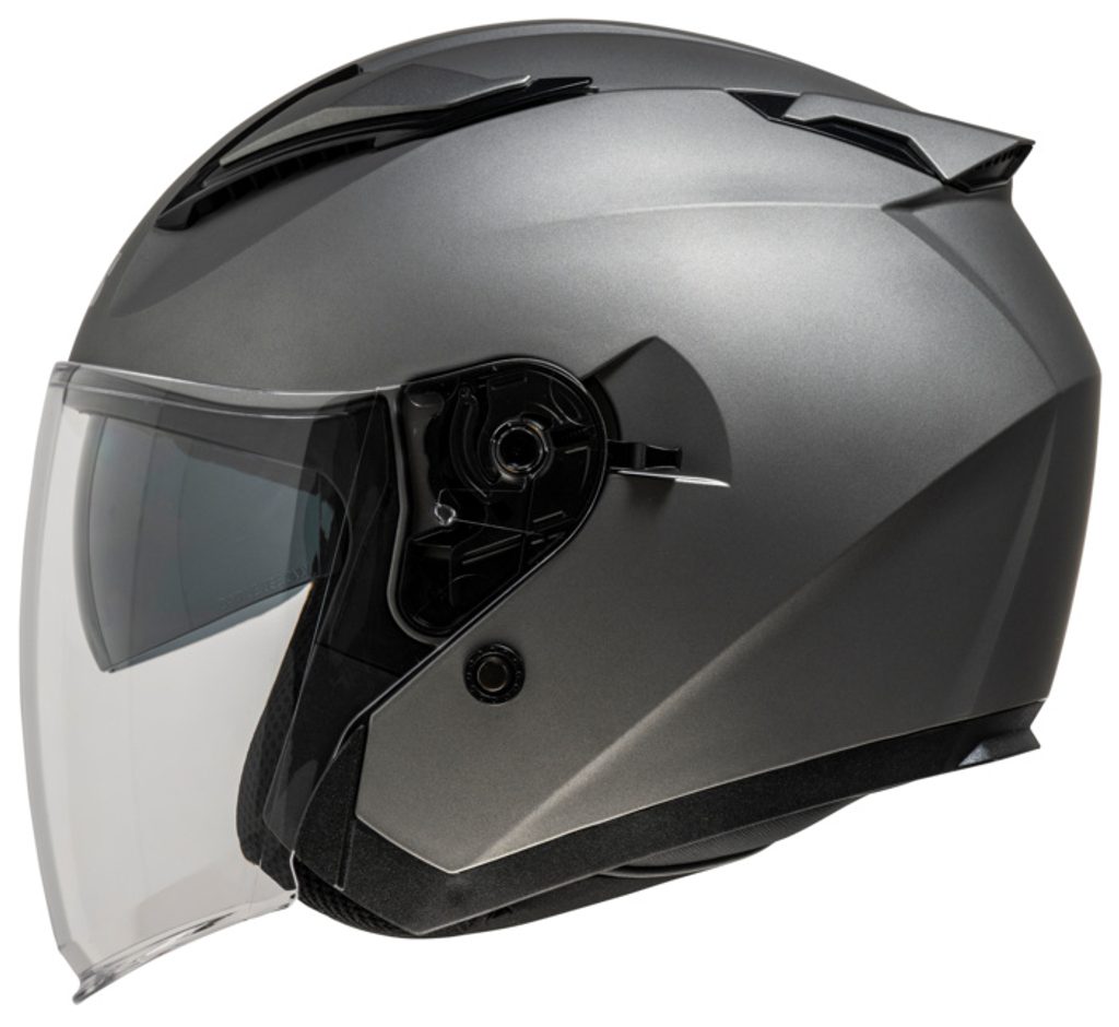 Otevřená JET přilba z polykarbonátu s dlouhým hledím.