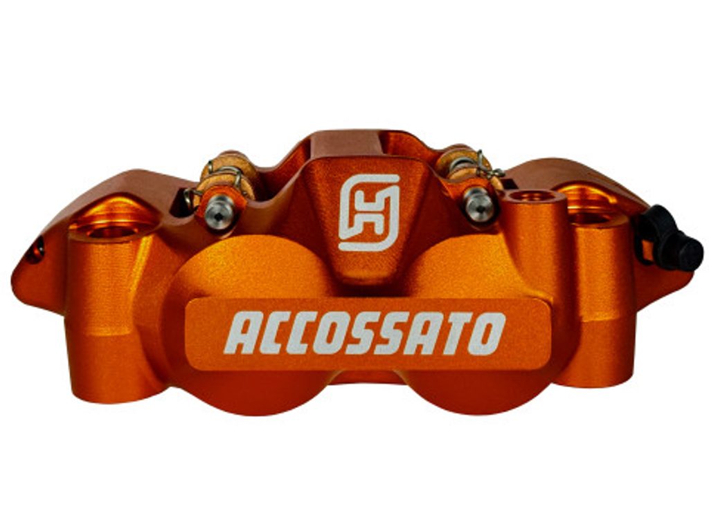 Radiální brzdový třmen ACCOSSATO, kovaný monoblok, rozteč 108mm, písty z hliníku.