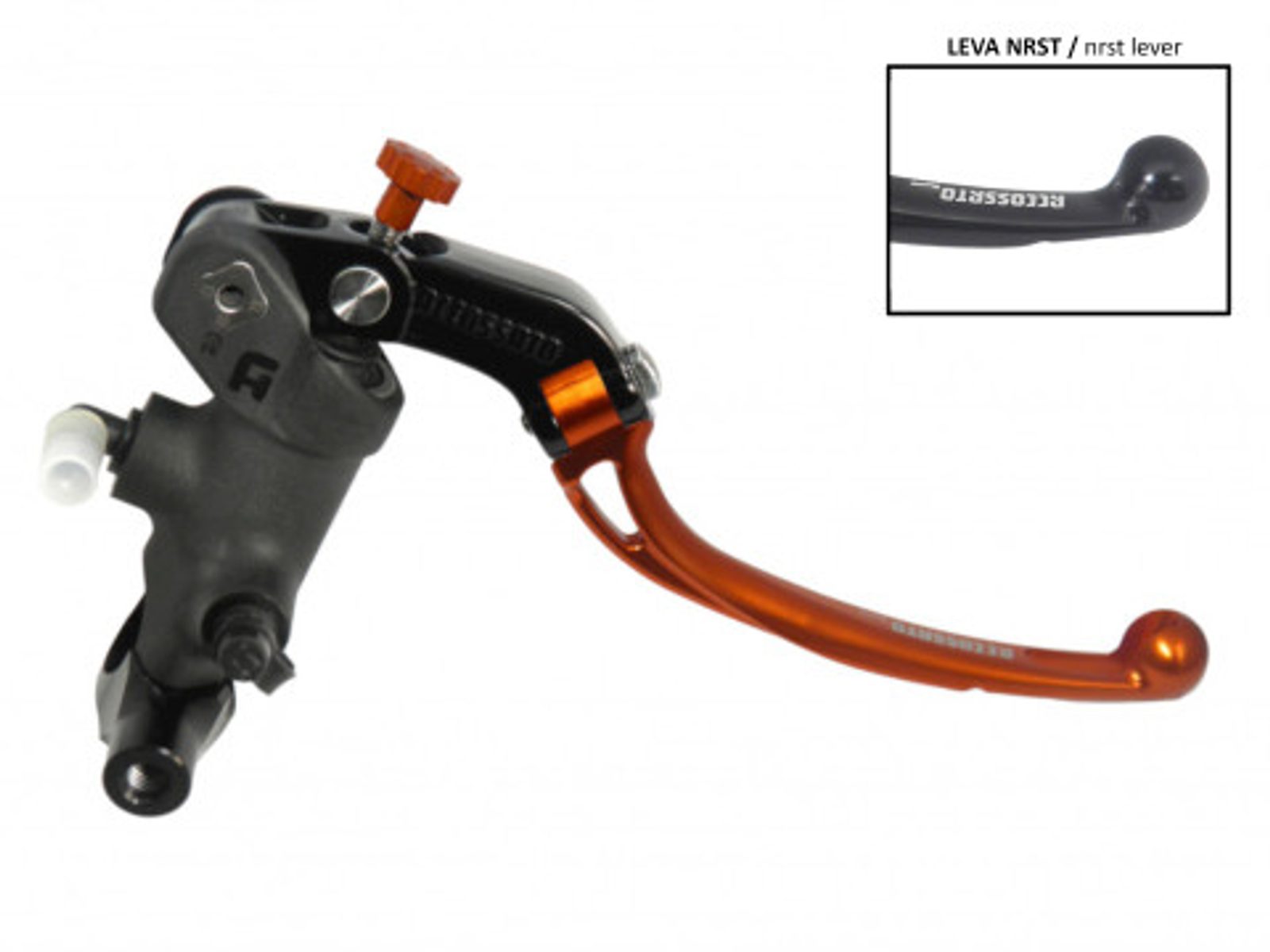 Radiální hlavní brzdový válec ACCOSSATO 19 x 17-18-19 se sklápěcí páčkou, oranžový