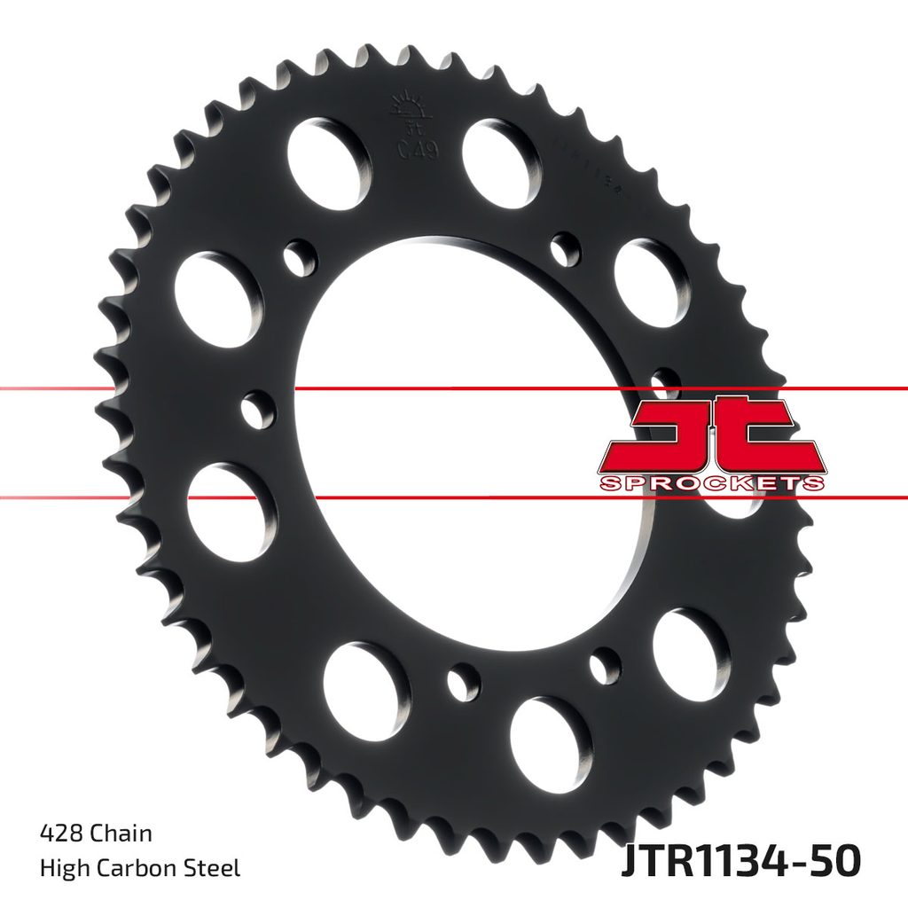 JT rozety jsou vyráběny z prvotřídní vysokopevnostní uhlíkové oceli C49. Sortiment ocelových rozet JT aktuálně čítá více než 2 500 dílů pro motocykly a čtyřkolky všech značek.