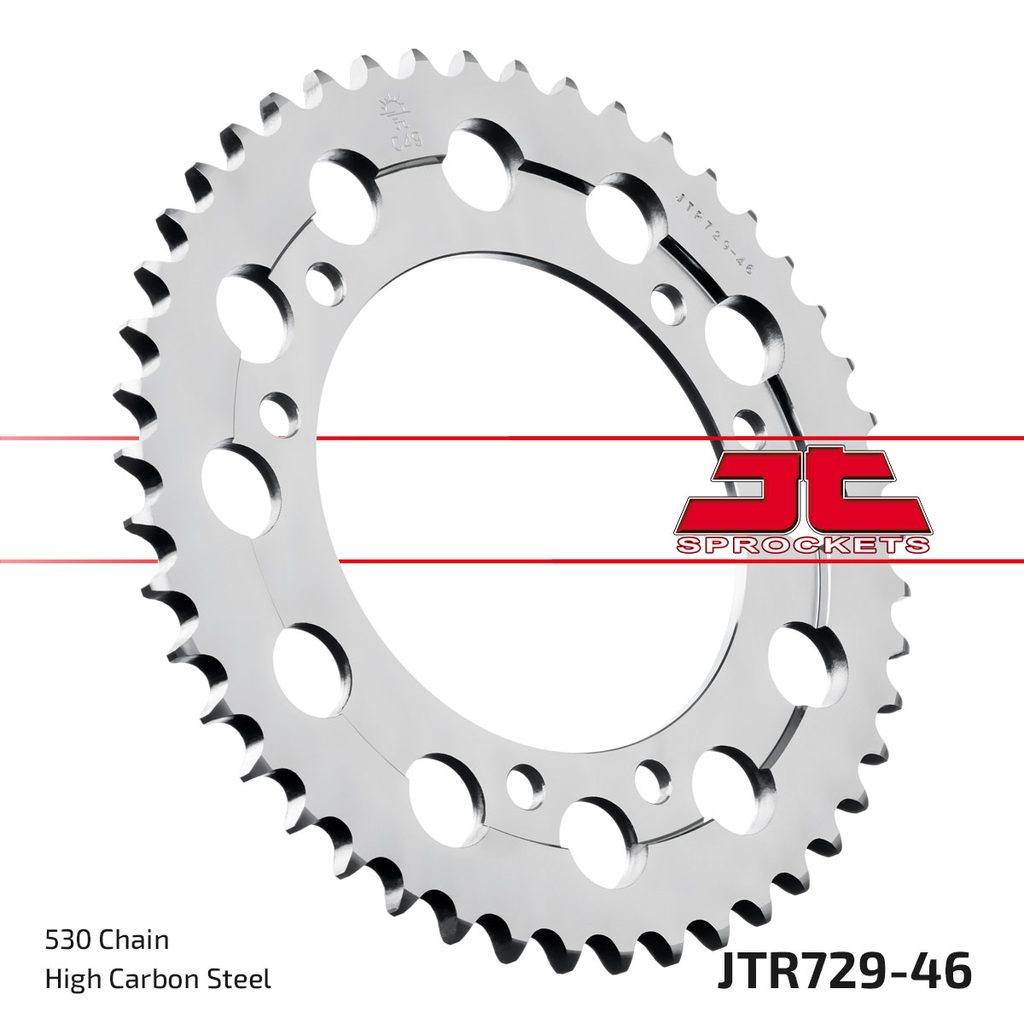 JT rozety jsou vyráběny z prvotřídní vysokopevnostní uhlíkové oceli C49. Sortiment ocelových rozet JT aktuálně čítá více než 2 500 dílů pro motocykly a čtyřkolky všech značek.