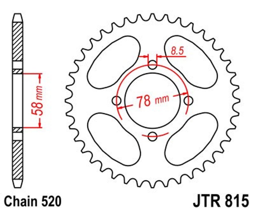 JT rozety jsou vyráběny z prvotřídní vysokopevnostní uhlíkové oceli C49. Sortiment ocelových rozet JT aktuálně čítá více než 2 500 dílů pro motocykly a čtyřkolky všech značek.