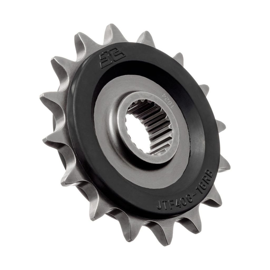 JT řetězová kolečka s gumovým tlumičem nabízejí stejnou kvalitu, konstrukci a technologii ověřenou výrobci japonských motocyklů už od počátku 90. let. Pryžové vložky pomáhají tlumit nárazy řetězu a zvyšují komfort i životnost pohonu.