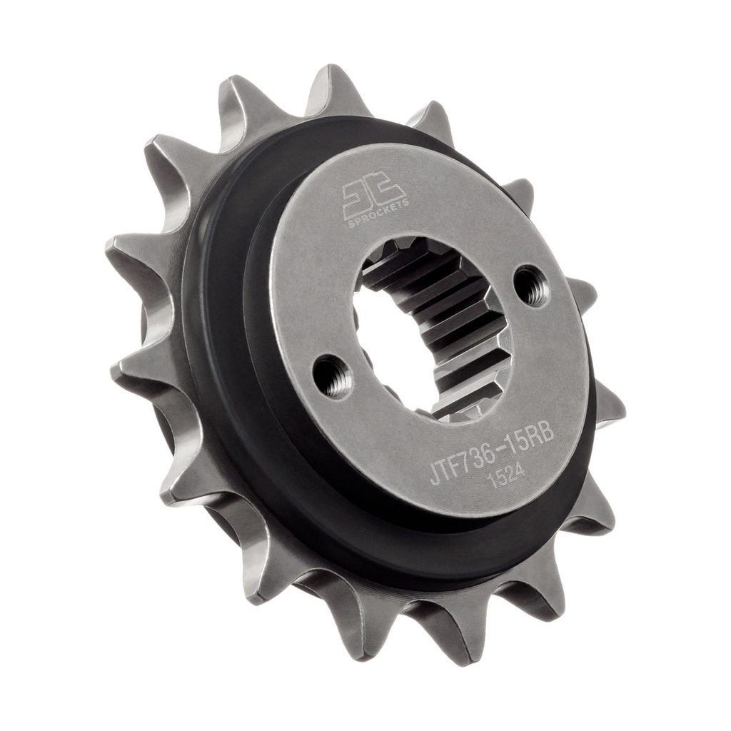 JT řetězová kolečka s gumovým tlumičem nabízejí stejnou kvalitu, konstrukci a technologii ověřenou výrobci japonských motocyklů už od počátku 90. let. Pryžové vložky pomáhají tlumit nárazy řetězu a zvyšují komfort i životnost pohonu.