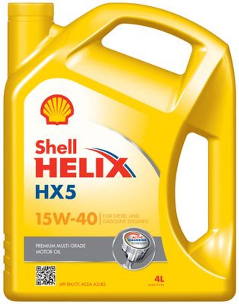 Shell Helix HX5 15W-40 je špičkový minerální olej vhodný pro benzínové motory s konvenčními karburátory, atmosférické nebo přeplňované dieselové motory s nepřímým vstřikováním a s "blow-by" recirkulací. Tyto motory mají vyšší výkon a pracují při vyšších teplotách než motory starší. Více zahřáté motory mohou produkovat více nečistot a kalu. Tento olej obsahuje technologii aktivního čištění. Neustále pomáhá zabránit nahromadění sazí a kalu. Snižuje také hlučnost motoru. Specifické vlastnosti oleje: Ochrana motoru a prodloužení jeho životnosti. Obsahuje technologii aktivního čištění. Minerální olej. Zabezpečuje lepší ochranu mechanických částí v teplém i chladném počasí. Ochrana starších motorů. Lze použít i pro LPG.Mísitelnost: Shell Helix HX5 15W-40 je mísitelný se všemi značkovými motorovými oleji, které odpovídají specifikacím vydávaným výrobci automobilů. Vynikající výkonnost tohoto produktu však může být plně využita pouze tehdy, když není míchán s jinými oleji. Výkonové třídy, specifikace: SAE 15W-40 ACEA A3/B3 API SN/CF