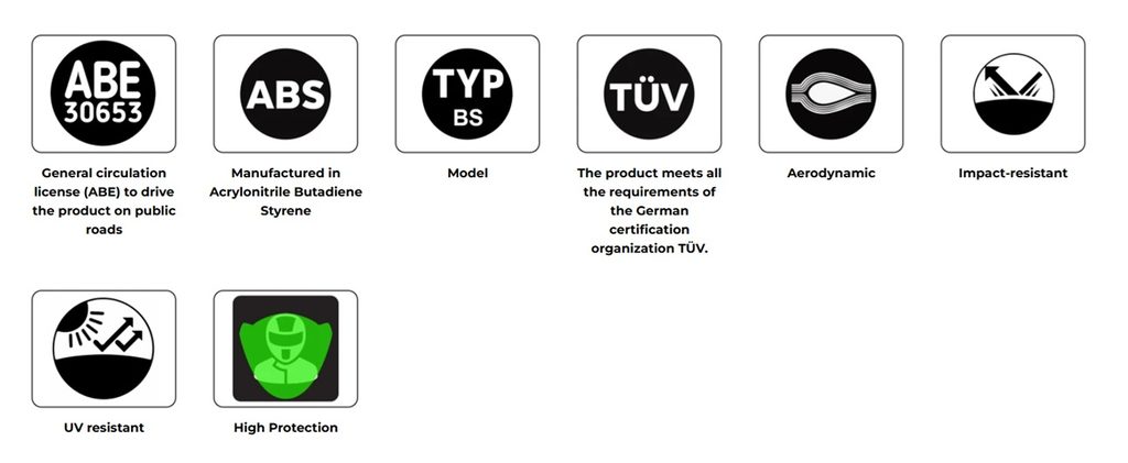 Vyrobeny s využitím nejmodernějších technologií, jejich komponenty jsou z hliníku a/nebo ABS materiálů, které jsou vysoce odolné proti nárazům i UV záření, a zároveň jsou lehké a trvanlivé. Plastové části mají integrovanou povrchovou úpravu, která zlepšuje odolnost vůči chemickým vlivům a zároveň poskytuje plnou ochranu proti UV záření. Tato vrstva eliminuje potřebu lakování krytu motoru. Kovové držáky jsou vyrobeny z 2mm kovu s antikorozní úpravou, jsou odolné a snadno se instalují.