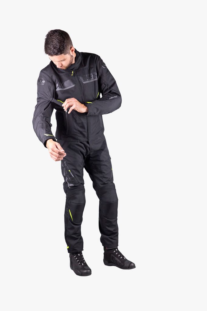 Voděodolná textilní bunda na motorku, vyrobená z odolného materiálu Polyoxford 600D. Díky celoobvodovému zipu ji snadno spojíte s kalhotami iXS Carbon-ST, se kterými tvoří pohodlný komplet pro sportovní jízdu.