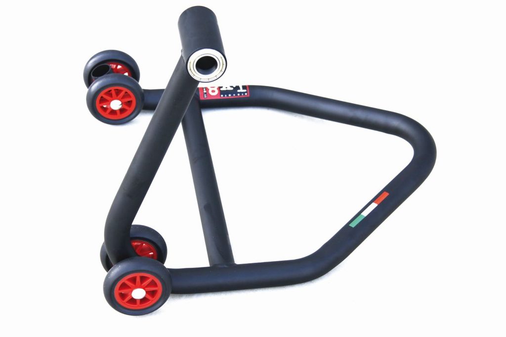 Stoánek pro skútr BMW s jednostrannou kyvnou vidlicí bez čepu.